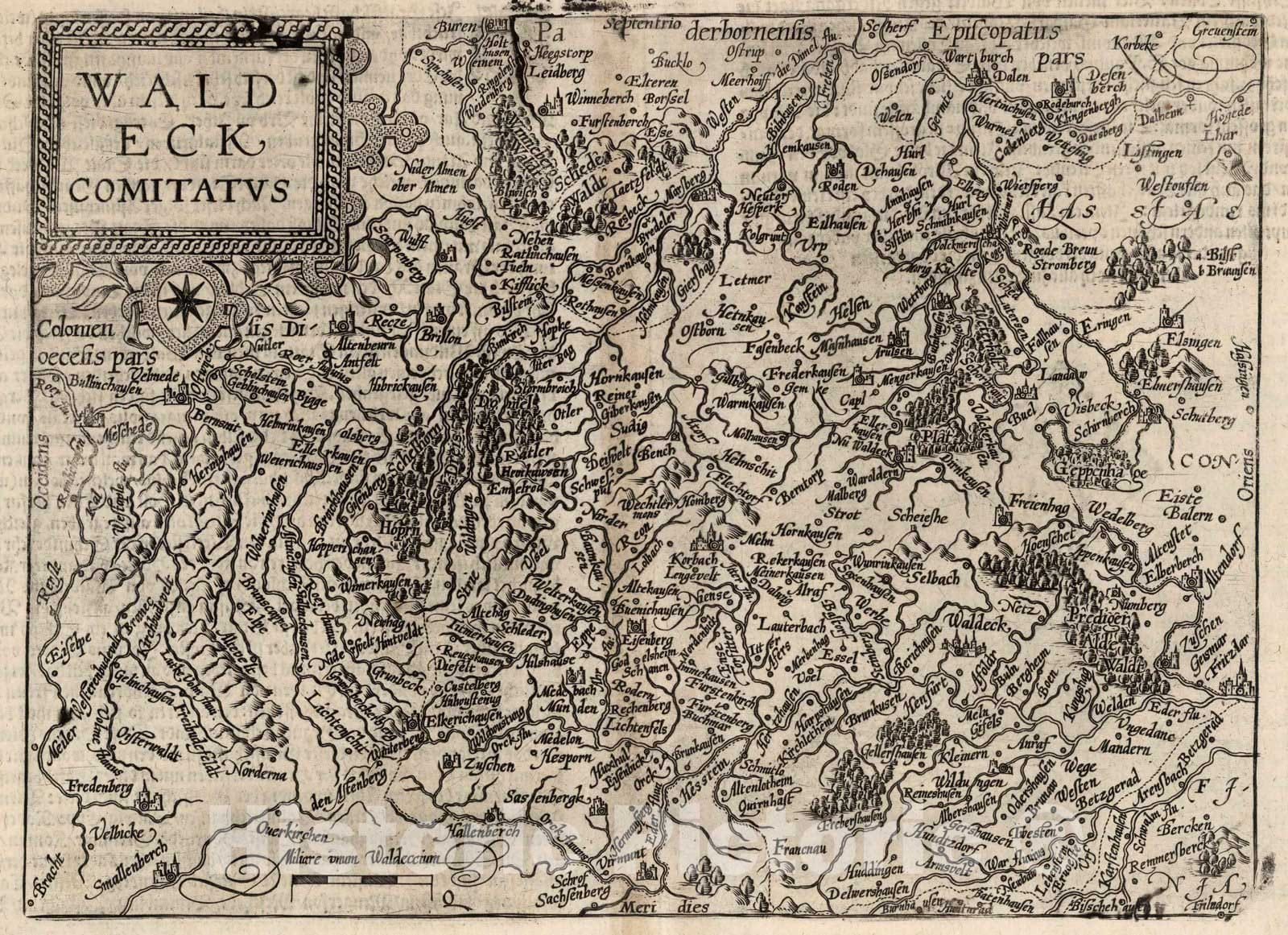 • .Historic Map : Germany,33. Comitatus Waldeck accurate descriptus. 1600 , Vintage Wall Art