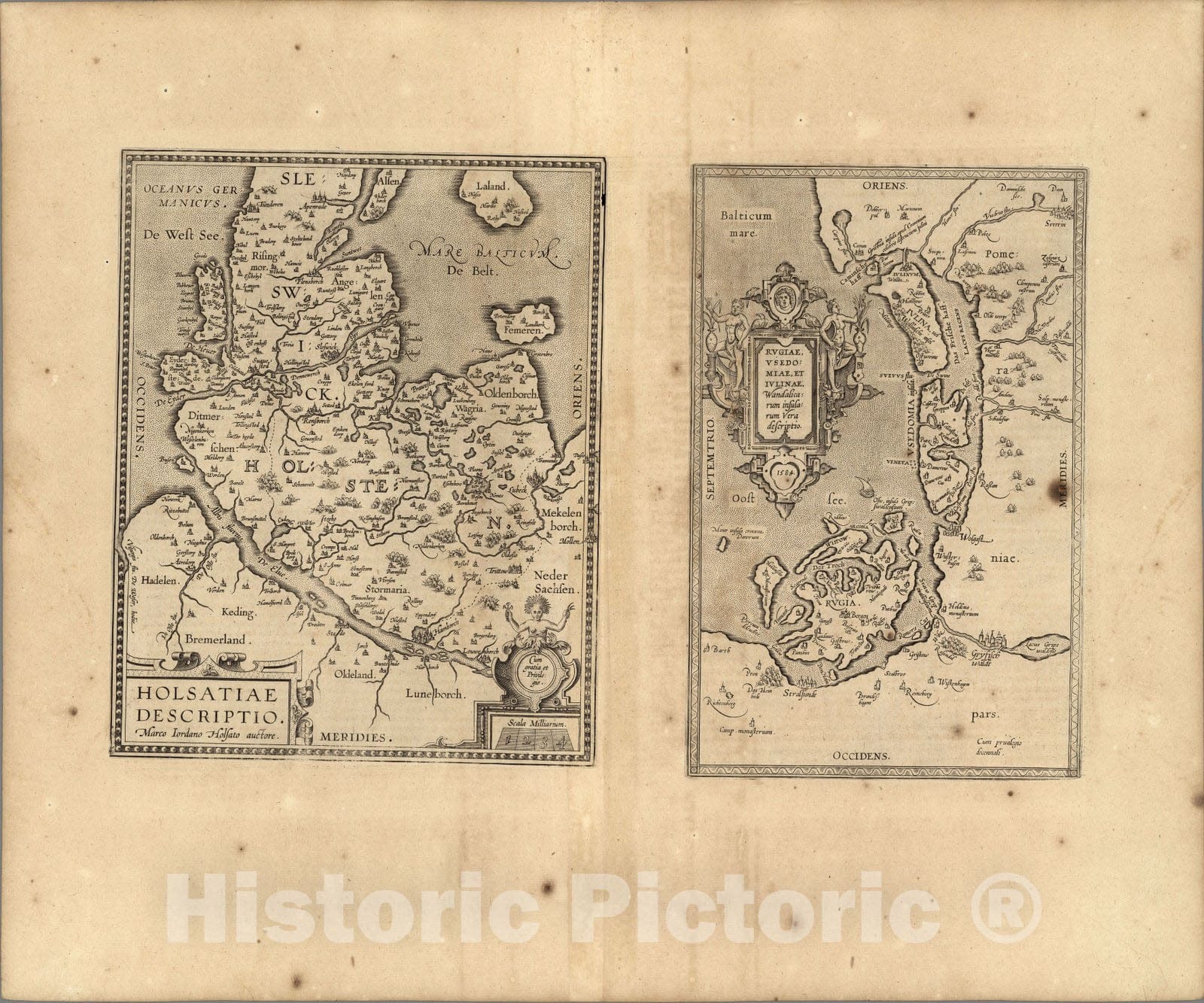 • .Historic Map : Germany,(57) Holsatiae (with) Rugiae, Usedomiae, Et Ivlinae. 1584 , Vintage Wall Art