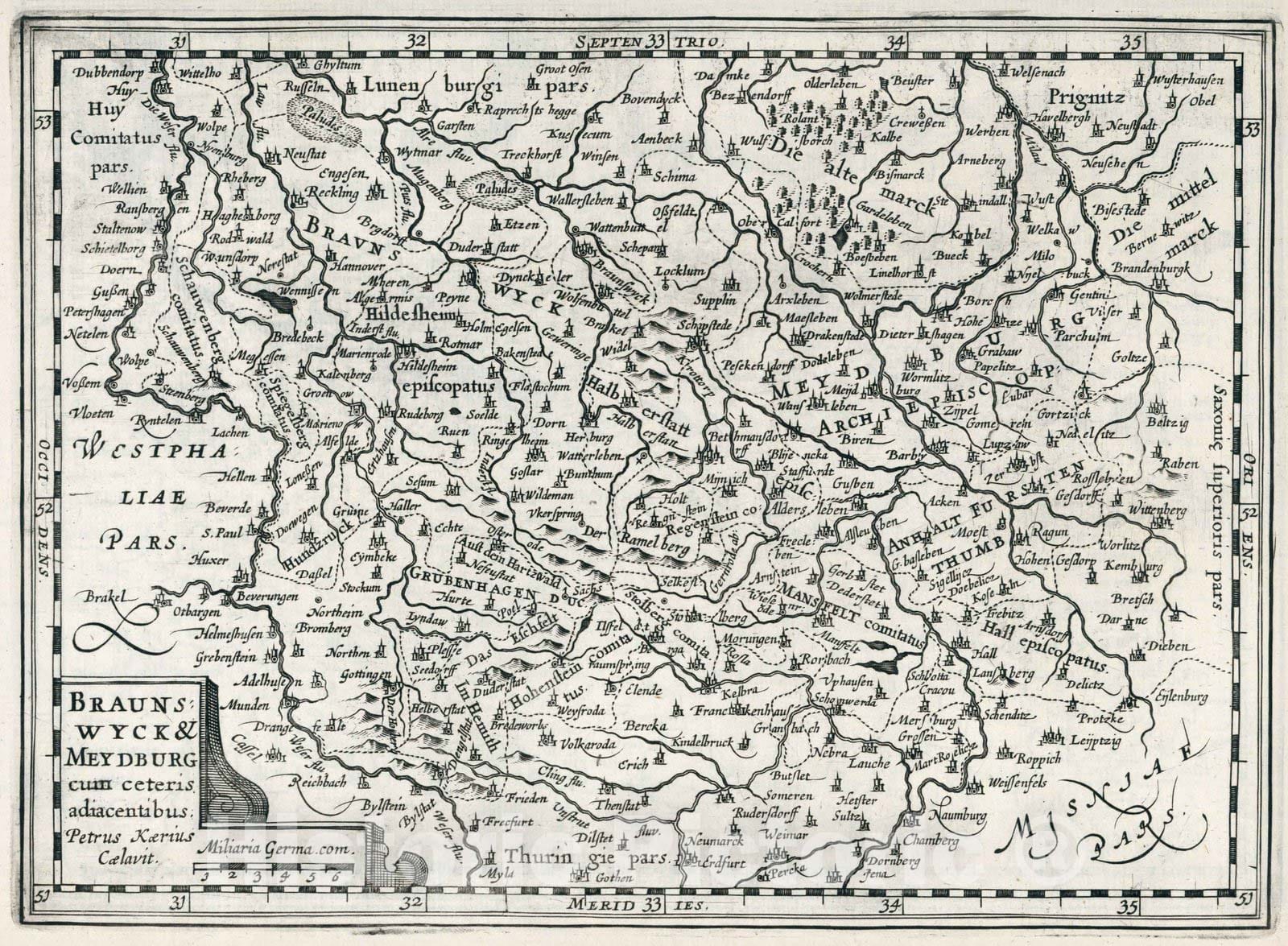 Historic Map : Germany,Braunswyck & Meydburg : cum ceteris adiacentibus 1636 , Vintage Wall Art