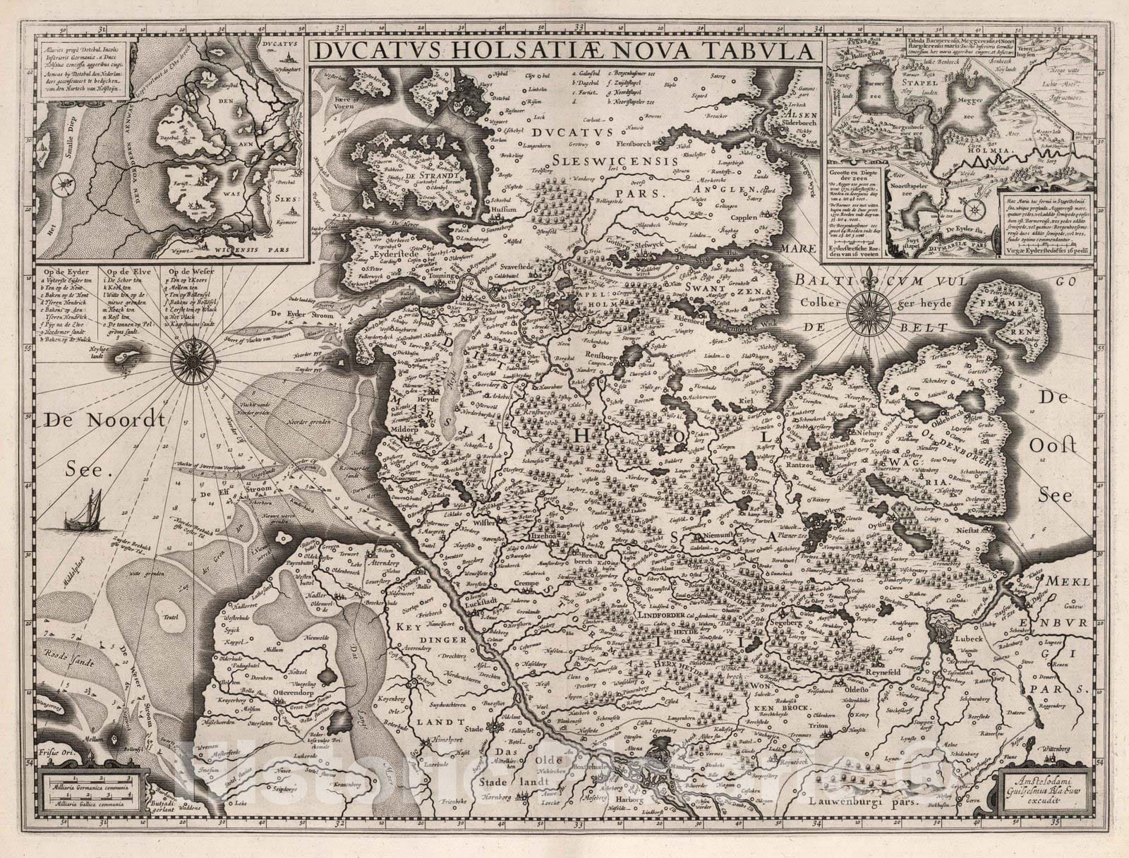 Historic Map : Holstein , Germany 1630 Ducatus Holsatiae Nova Tabula. , Vintage Wall Art