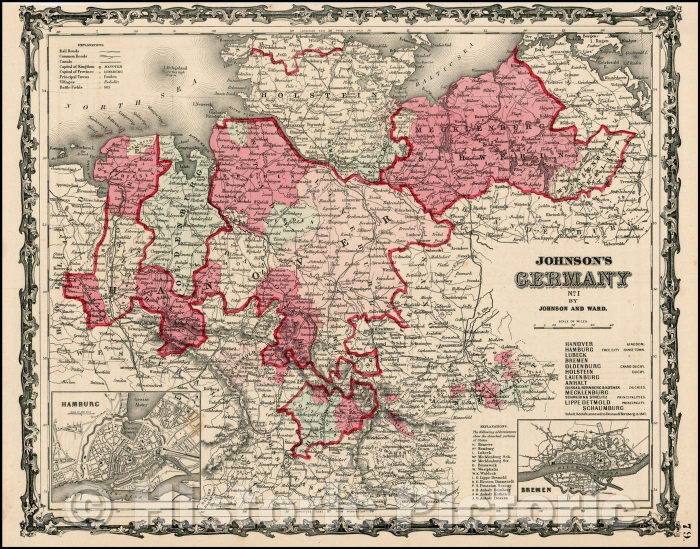 • .Historic Map - Johnson's Germany No. 1, 1864, Benjamin Ward - Vintage Wall Art