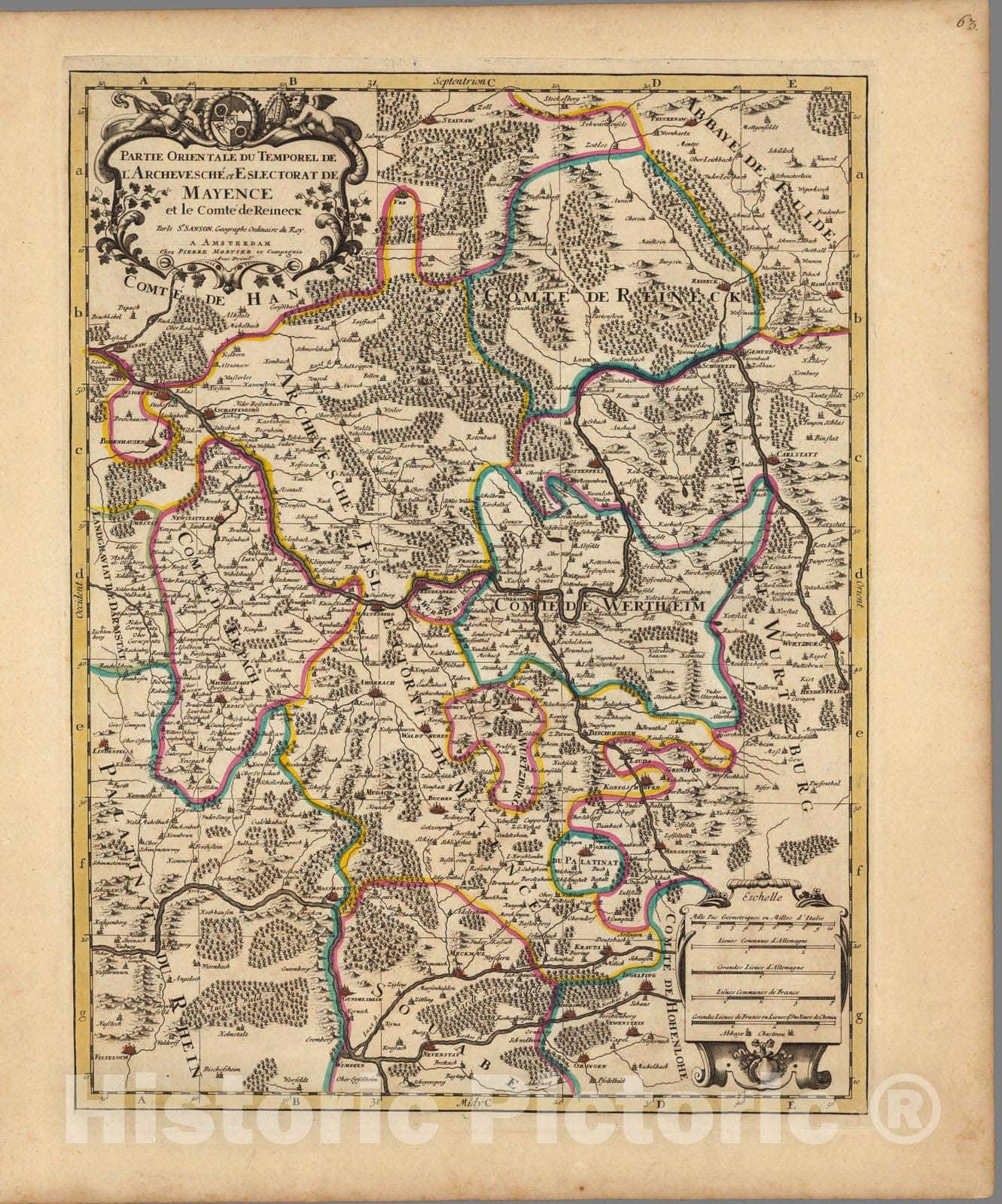Historic Map : Mainz , GermanyPartie Orientale du Temporel de L'Archevesche et Eslectorat de Mayence. 1708 , Vintage Wall Art