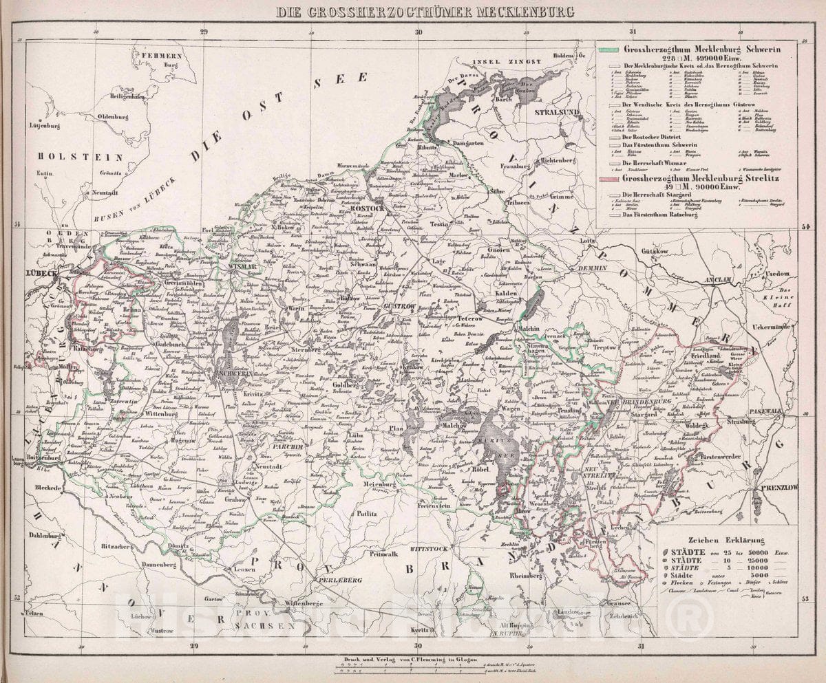 Historic Map : Mecklenburg , Germany Die Grossherzogthuemer Mecklenburg, 1847 Atlas , Vintage Wall Art