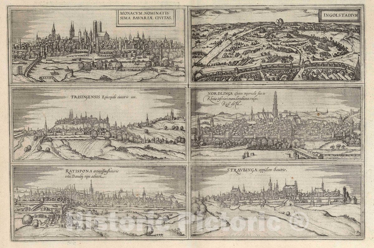 Munich , Germany,Munchen, Ingolstadt, Frisingensis (Freising). Nordlinga (Nordligen). Ratispona (Regensburg). Stravbinga (Straubing), 1577 , Vintage Wall Art