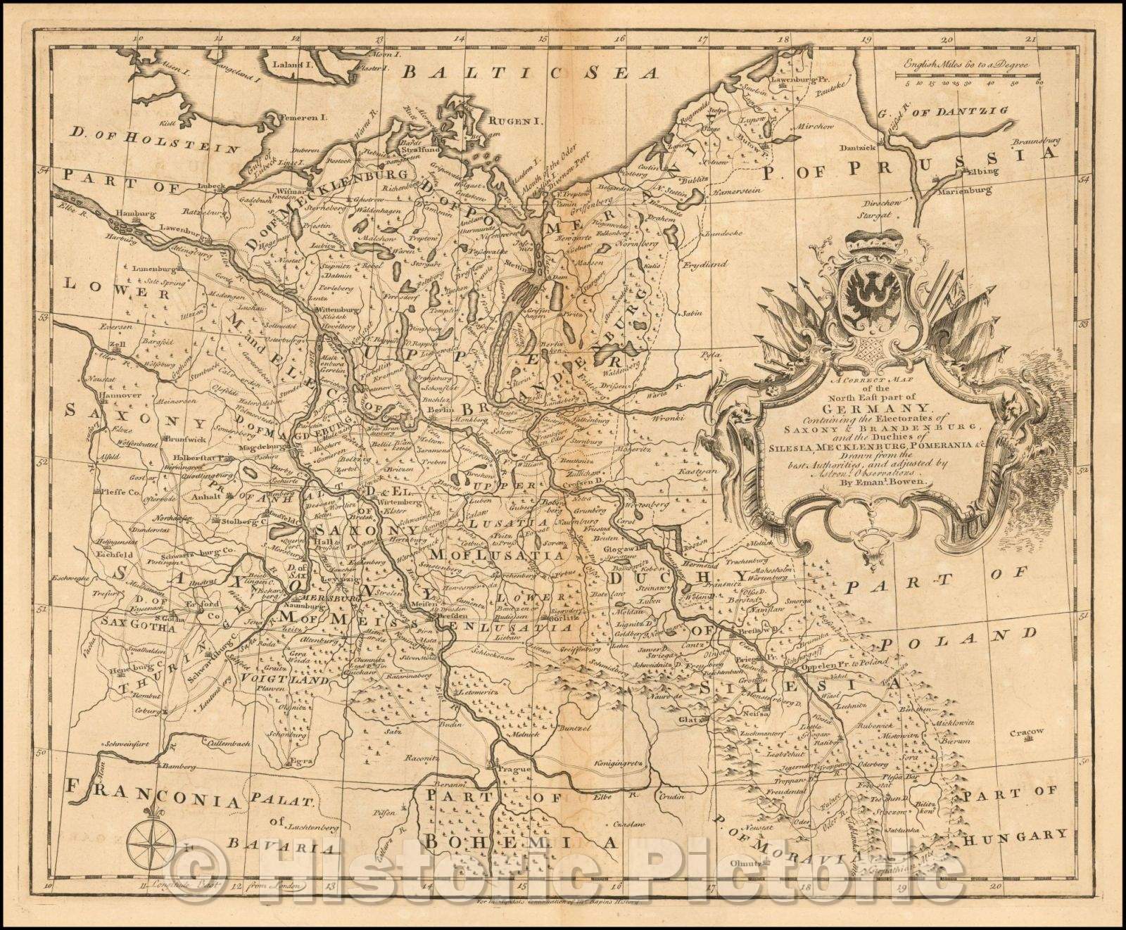 Historic Map - A New and Correct of the North East part of Germany, Containing the Electorates of of Saxony & Brandenburg, Duchies of Silesia, Mecklenbur, 1732 - Vintage Wall Art