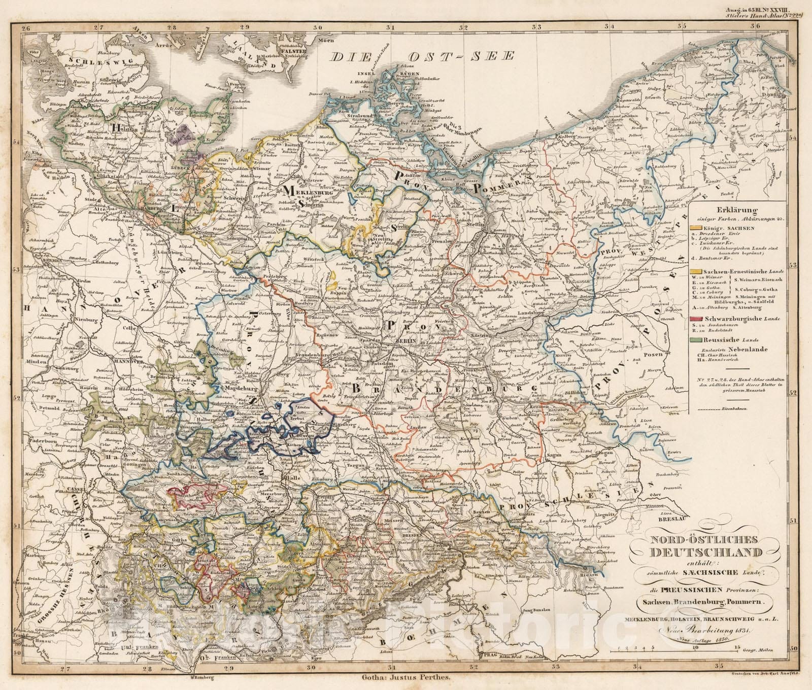 Historic Map : Nord-Ostliches Deutschland. (Northeast Germany)., 1850, Vintage Wall Art