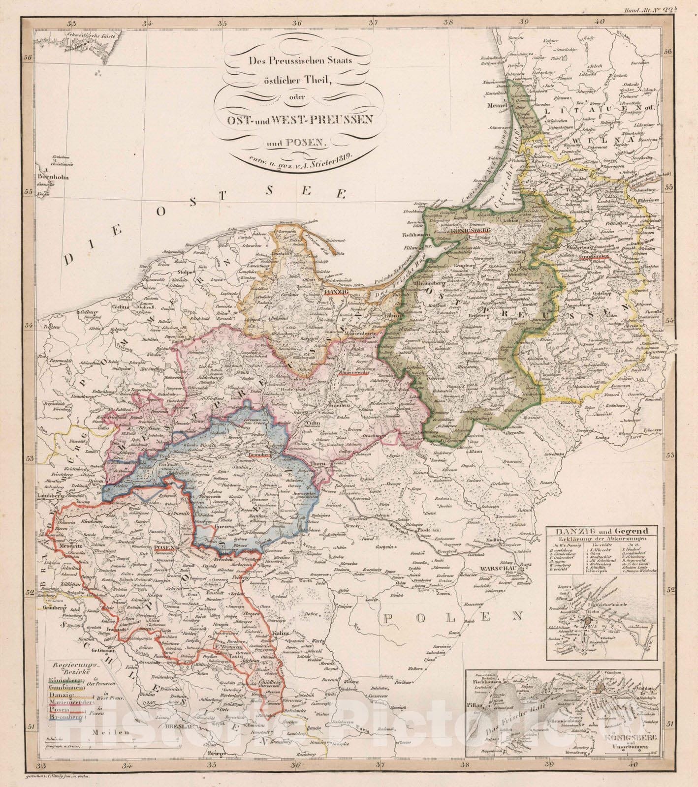 Historic Map : Prussia , Germany, 1819 Des Preussischen Staats ostlicher Theil , Vintage Wall Art