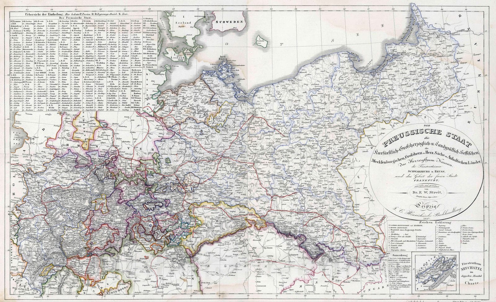 Historic Map : Prussia , Germany, 1847 Composite map: Der Preussische Staat , Vintage Wall Art