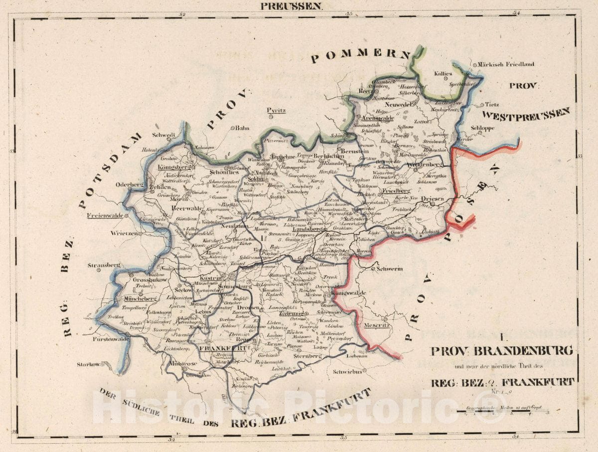 Prussia , Germany, V.2:6-10:IX. Preussen. I. Prov: Brandenburg Reg: Bez: 2. Frankurt. Kr. 1-9, 1825 Atlas , Vintage Wall Art