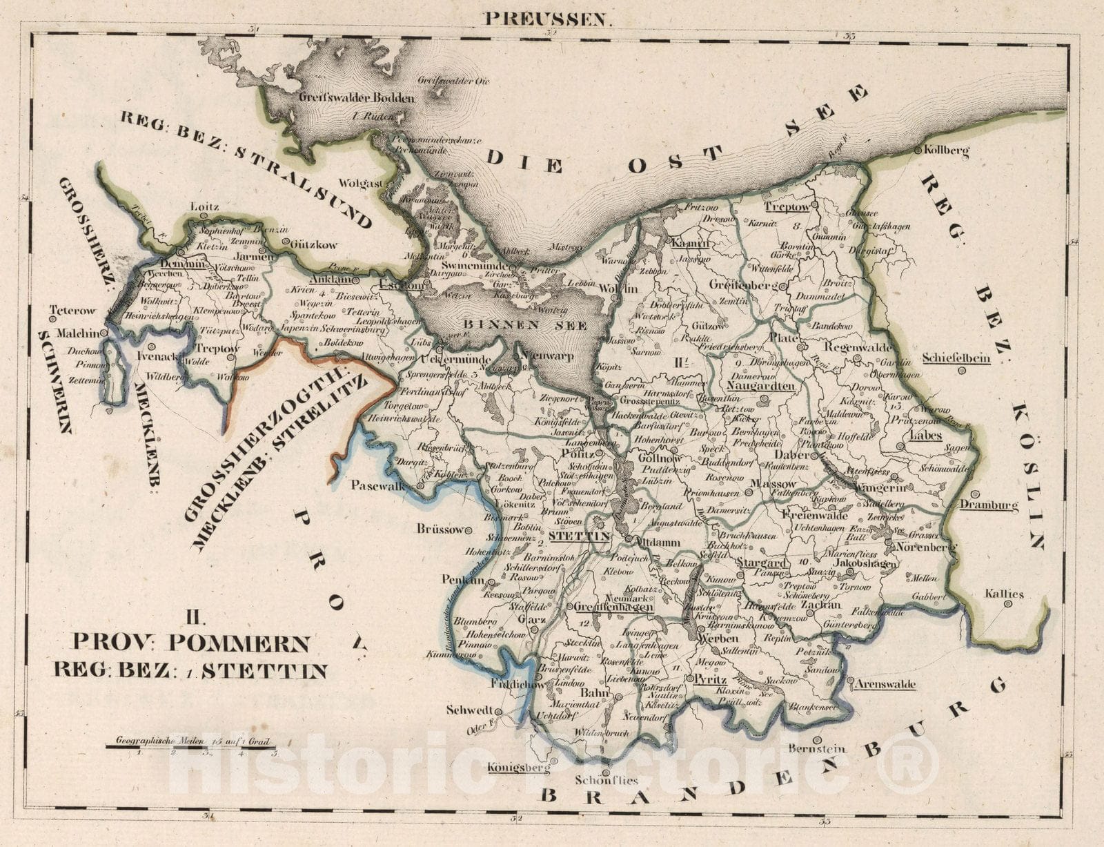 Historic Map : Prussia , Germany, V.2:6-10:IX. Preussen. II. Prov: Pommern. Reg: Bez: 1. Stettin 1825 , Vintage Wall Art