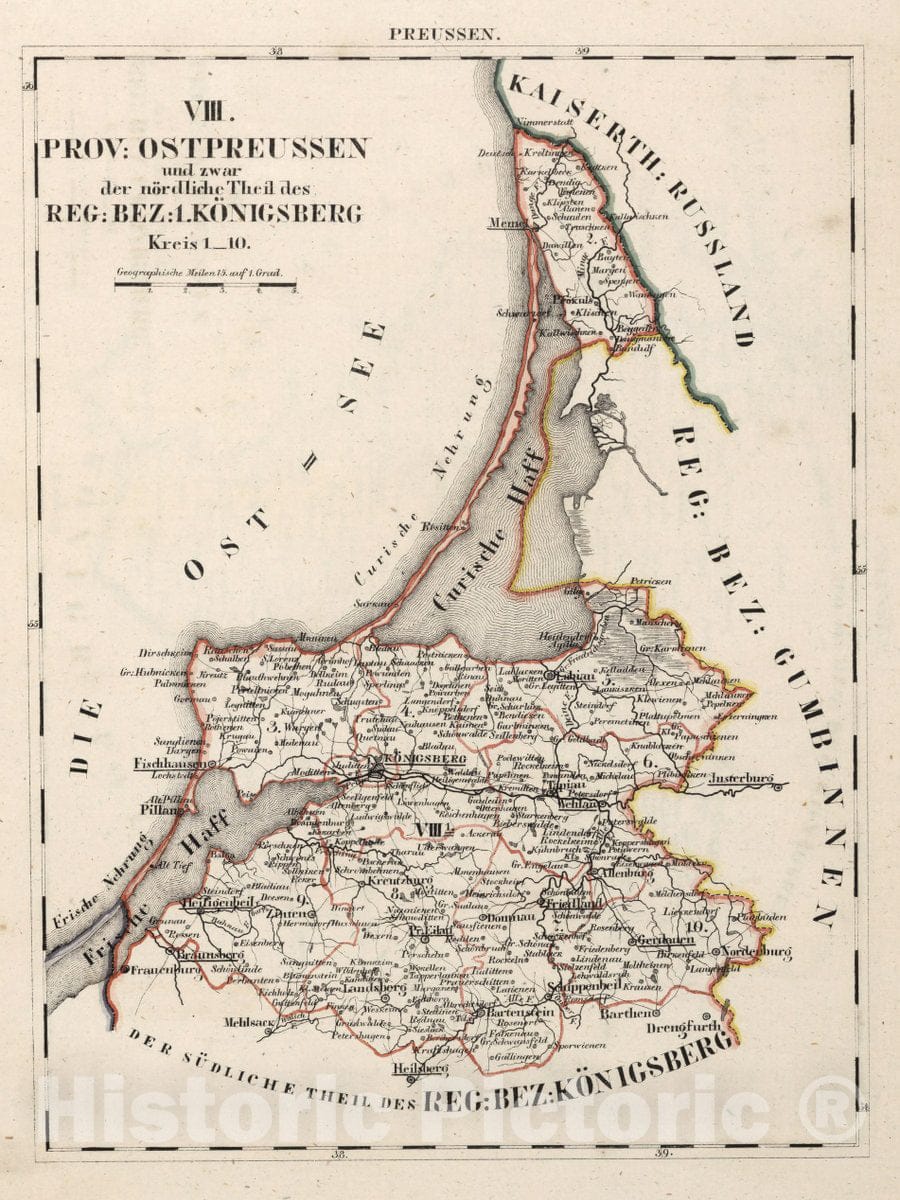 Preussen. VIII. Prov: Ostpreussen ... Reg: Bez: 1. Konigsberg. Kreis 1-10. (to accompany) Atlas von Europa nebst den Kolonien ... bearbeitet von W. E. A. v. Schlieben ... Leipzig bei Georg Joachim Goschen 1825. | Atlas von Europa nebst den Kolonien : fur Geschaftsmanner, Zeitungsleser und Besitzer des Conversations-Lexicons in einer Folge von Charten und einem alphabetisch eingerichteten Texte : bearbeitet von W. E. A. v. Schlieben ... Leipzig bei Georg Joachim Goschen 1825. O. Hermann, Lith. | Publisher:Georg Joachim Goschen