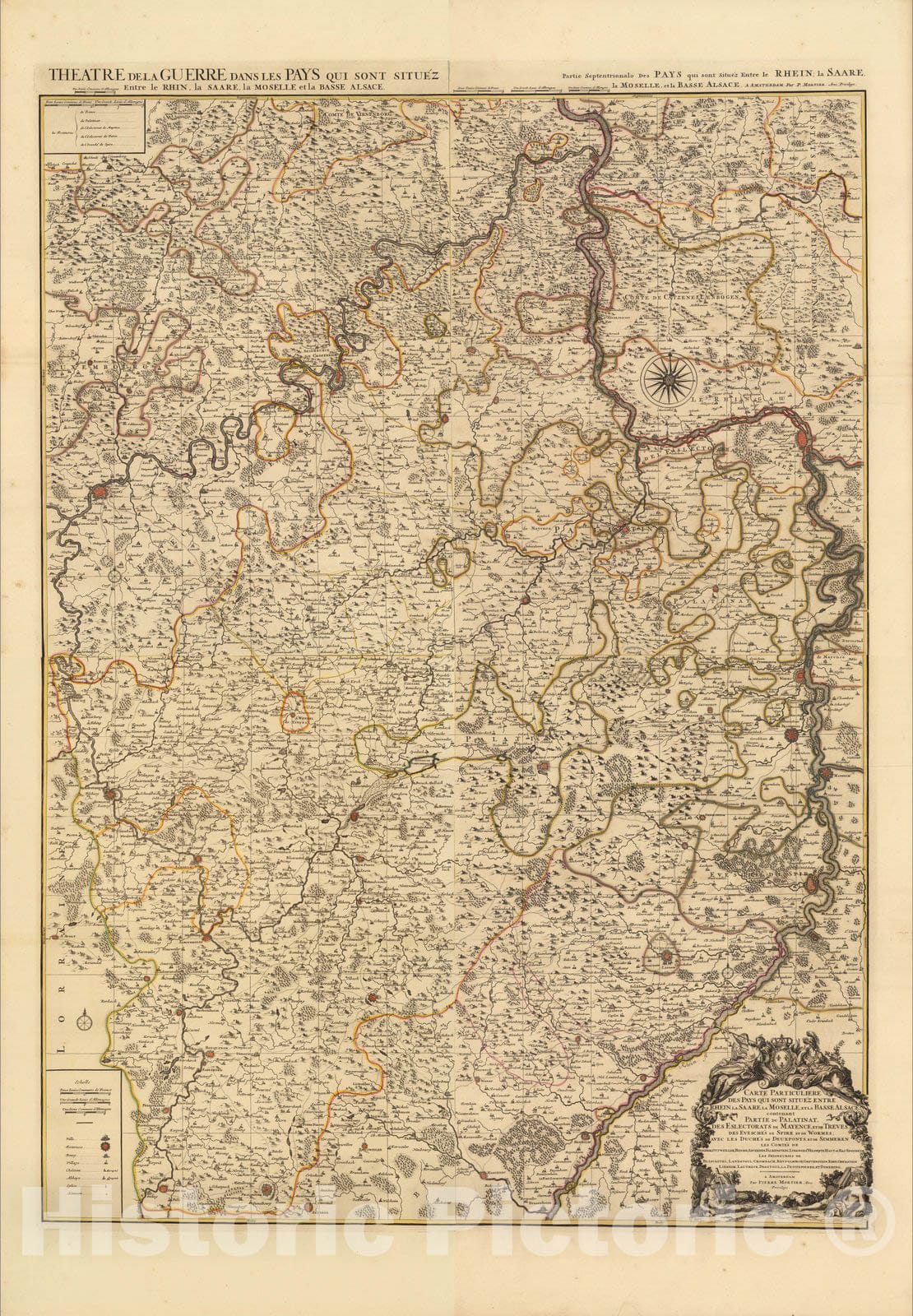 Historic Map : Rhine River , GermanyComposite: Carte Particuliere des Pays qui sont situez Entre le Rhein, la Saare, la Moselle, et la Basse Alsace. 1708 , Vintage Wall Art