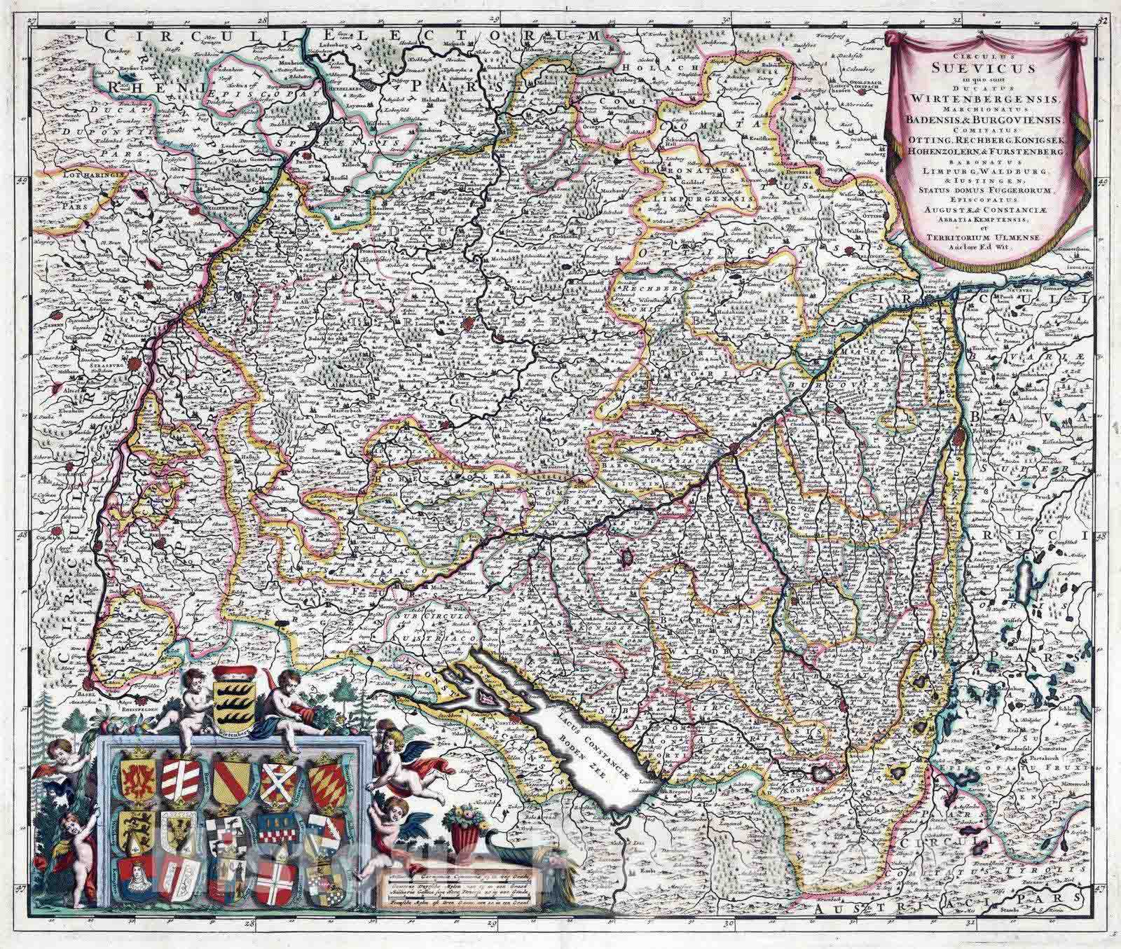 Historic Map : Schwarzwald , Germany 1682 Circulus Seuvicus in quo sunt Ducatus Wirtenbergensis, , Vintage Wall Art