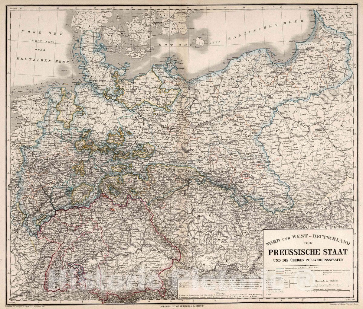 Historic Map : Switzerland, Prussia , Germany Nord- und West-Deutschland, der Preussische Staat und die ?brigen Zollvereinsstaaten , Vintage Wall Art