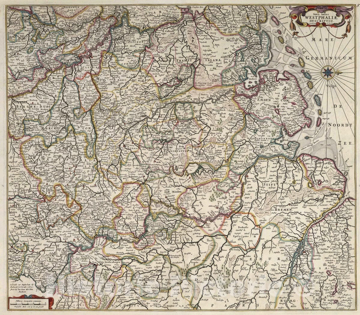 Wesphalia , Germany 1682 Nova totius Westphalia Descriptio. , Vintage Wall Art