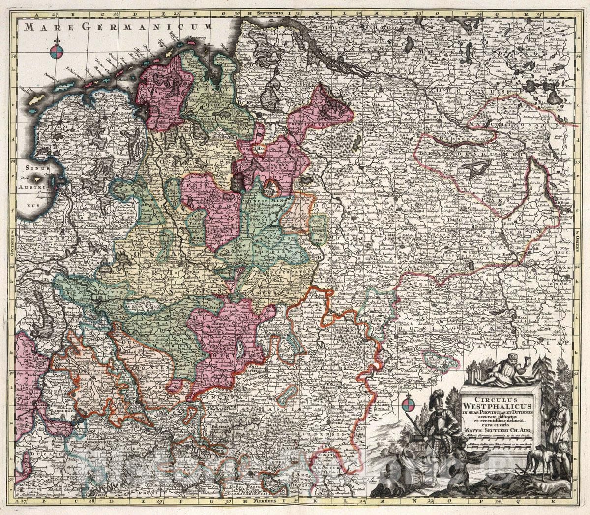 Westfalia , Germany 27. Circulus Westphalicus, 1729 Atlas , Vintage Wall Art