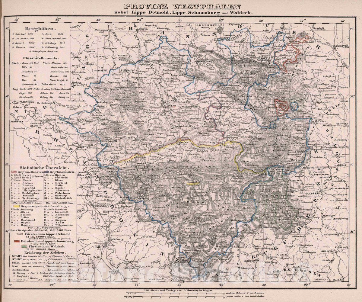Historic Map : Westphalia , Germany Provinz Westphalen, 1847 Atlas , Vintage Wall Art