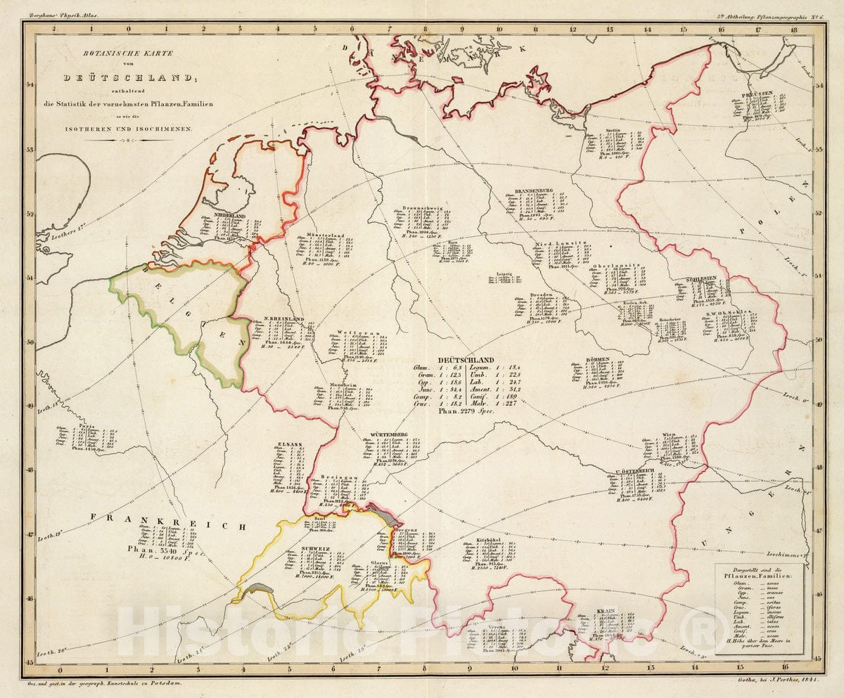 • .Historic Wall Map : Germany, 1841 Botanische Karte von Deutschland. , Vintage Wall Art