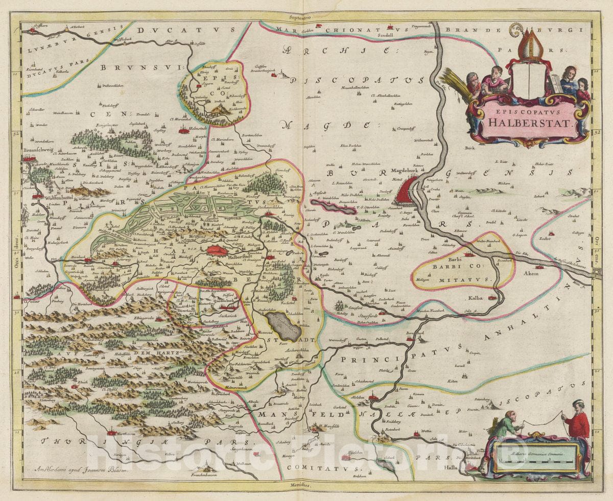 Historic Wall Map : Germany, Episcopatvs Halberstat, 1665 Atlas , Vintage Wall Art