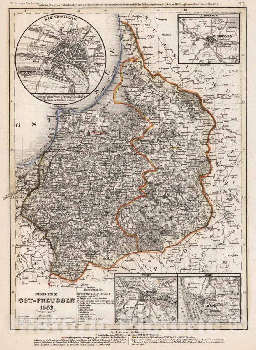Historic Wall Map : Prussia , Germany, Provinz Ost-Preussen. 1853. Gez. v. Art. Pr. Ltn. Renner. Stahlstich (Direction v. Kleinknecht), 1853 Atlas ,