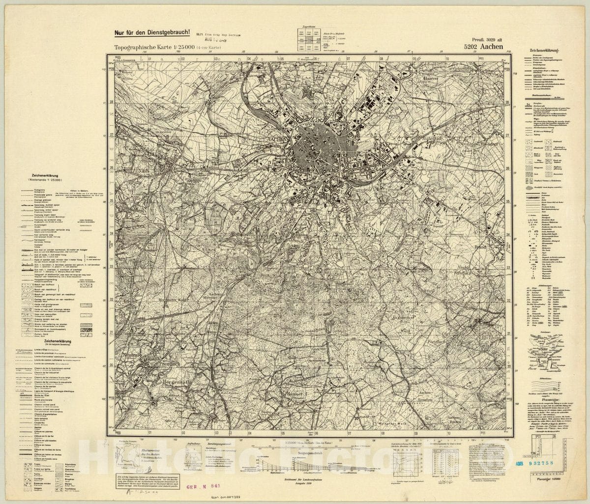 Map : Aachen, Germany 1939, Topographische Karte 1:25 000 , Antique Vintage Reproduction