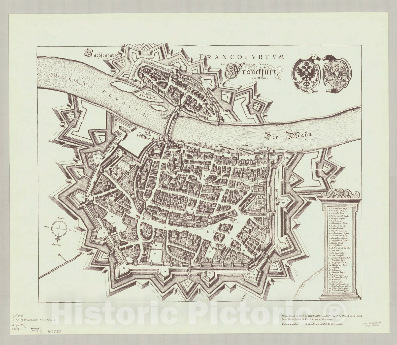Map : Frankfurt Am Main, Germany 1695 1969, vulgo Franckfurt am Main, Antique Vintage Reproduction