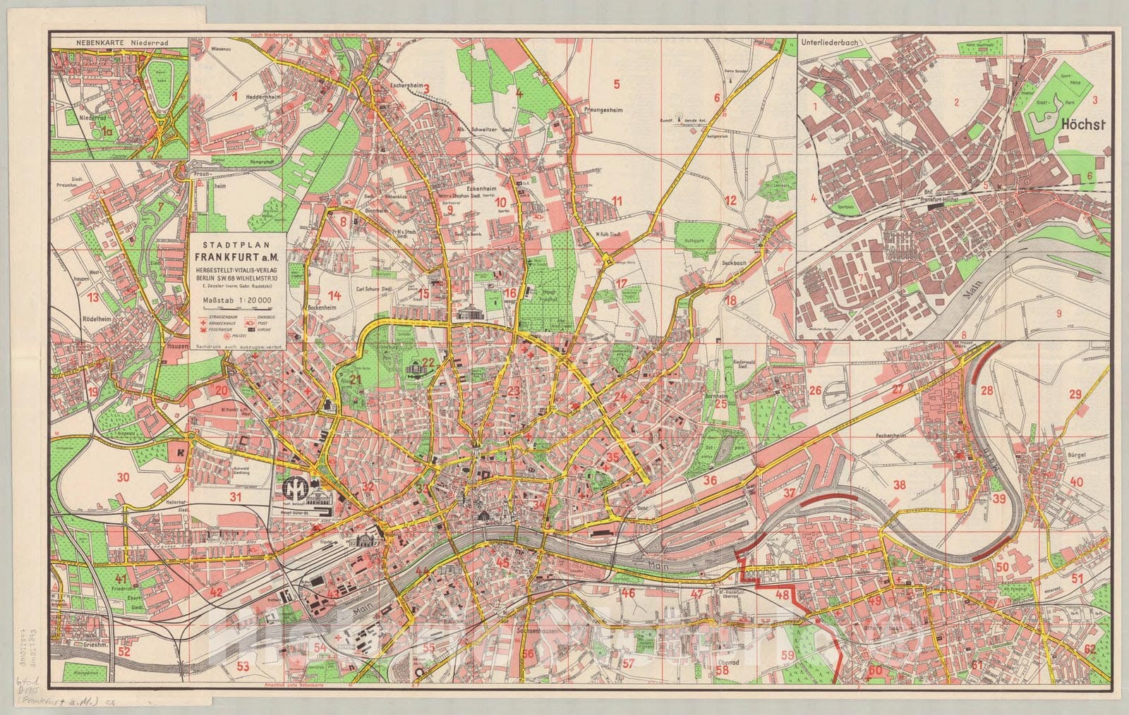 Map : Frankfurt am Main, Germany 1955, Stadtplan Frankfurt a.M. , Antique Vintage Reproduction