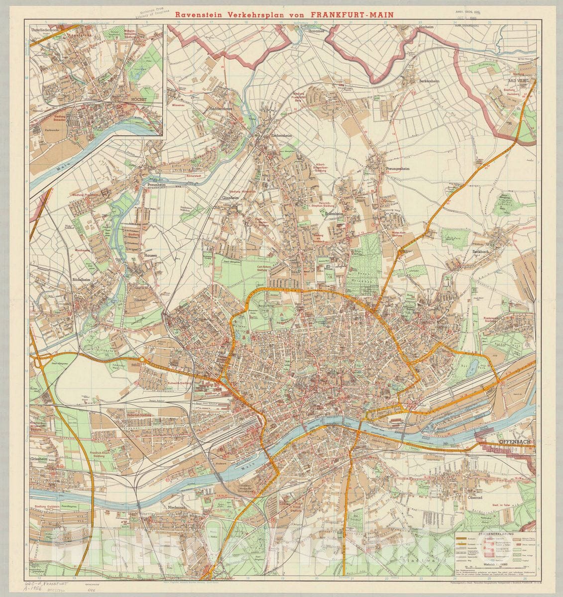 Map : Frankfurt am Main, Germany 1956, Ravenstein Verkehrsplan von Frankfurt-Main , Antique Vintage Reproduction