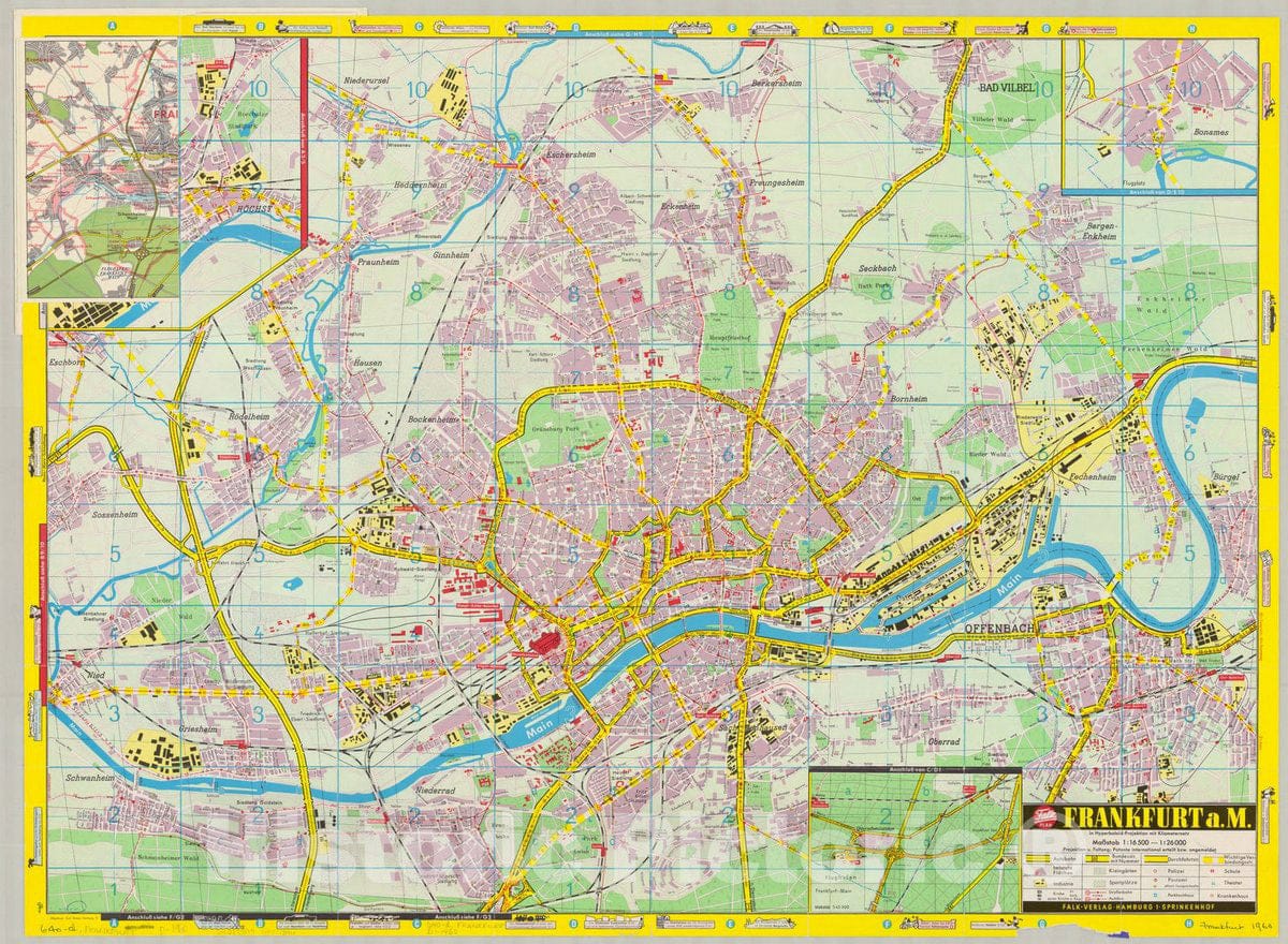 Map : Frankfurt am Main, Germany 1960, , Antique Vintage Reproduction
