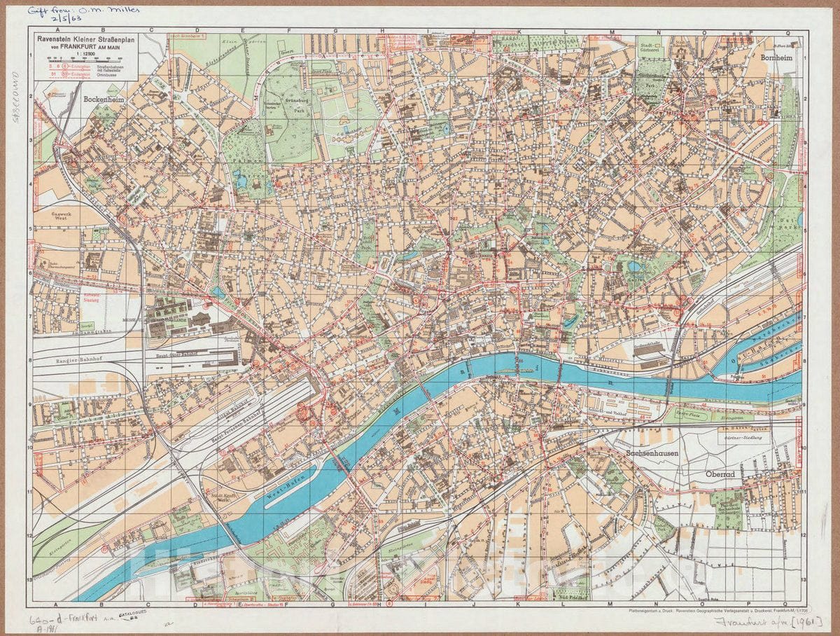 • .Map : Frankfurt am Main, Germany 1961, Ravenstein kleiner Strassenplan von Frankfurt am Main , Antique Vintage Reproduction