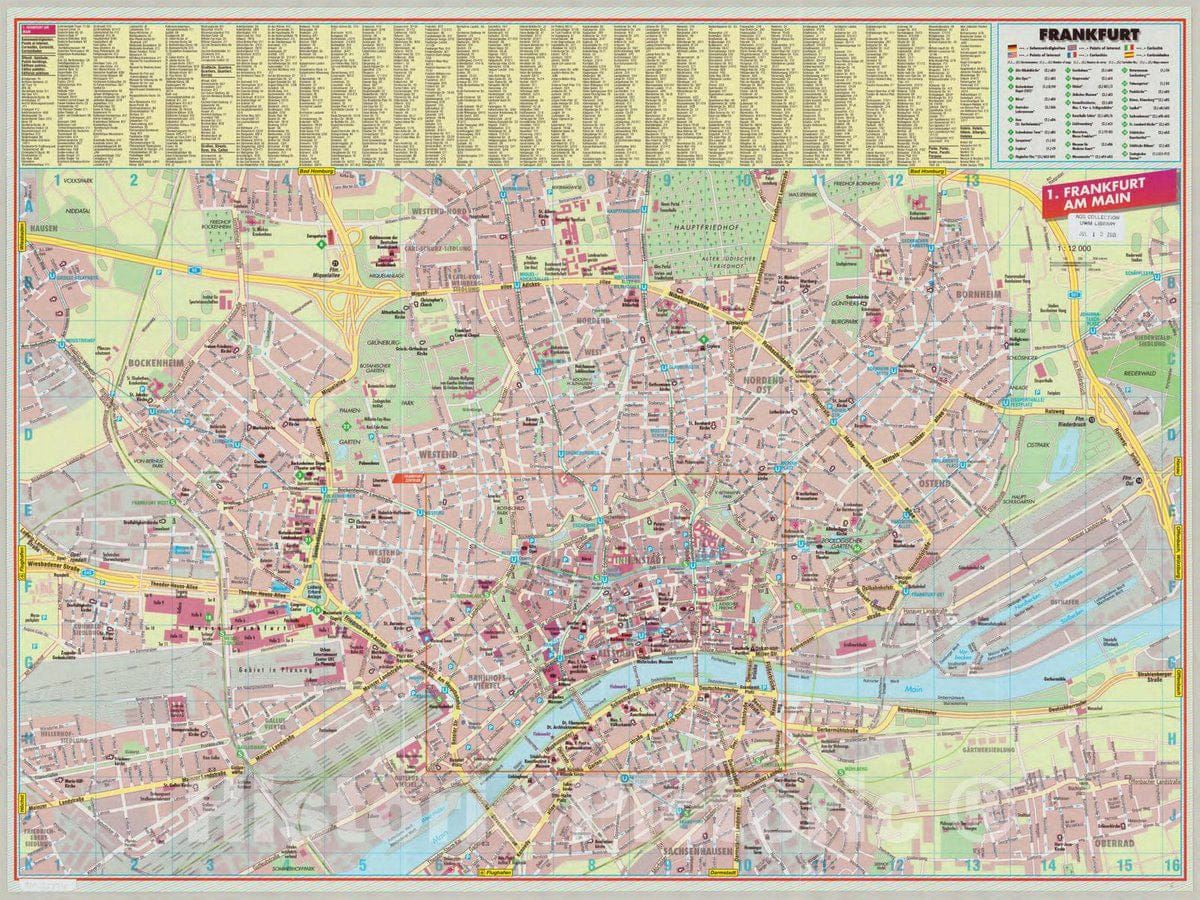 Map : Frankfurt am Main, Germany 2000 2, B&B city streets. Frankfurt am Main 1:12 000 innenstadtkarte , Antique Vintage Reproduction
