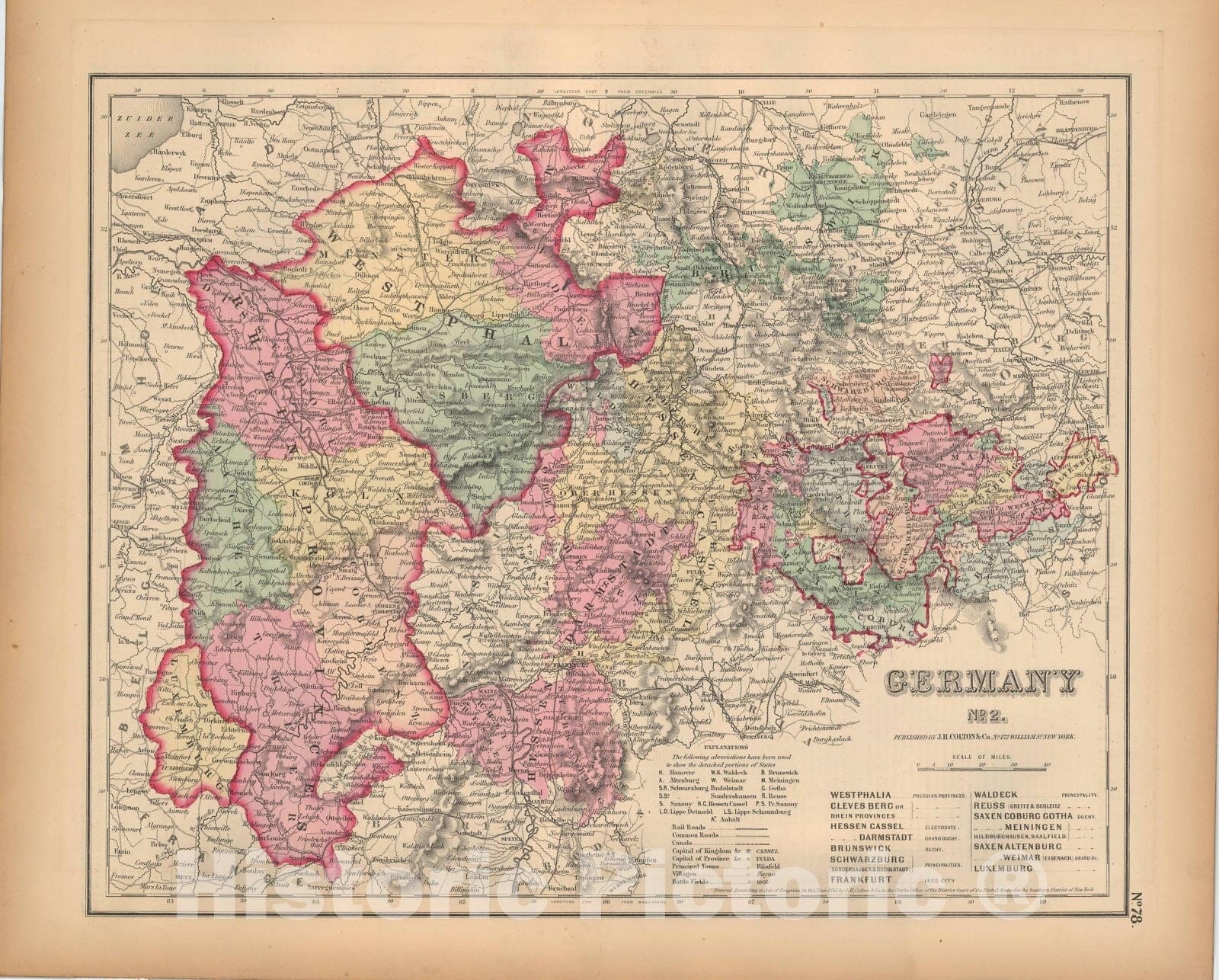 Historic Map : General Atlas (Of The World), Germany 1857 , Vintage Wall Art
