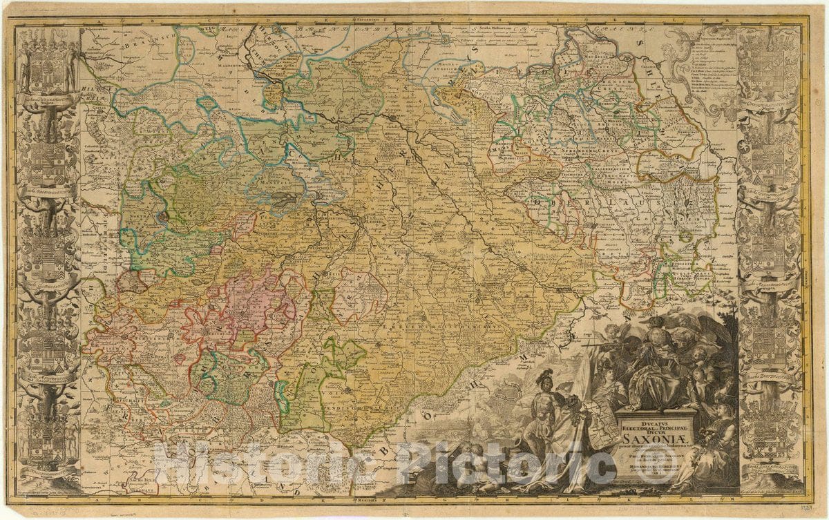 • .Map : Germany 1731, Ducatus, Electoratus et Principatus Ducum Saxoniae , Antique Vintage Reproduction