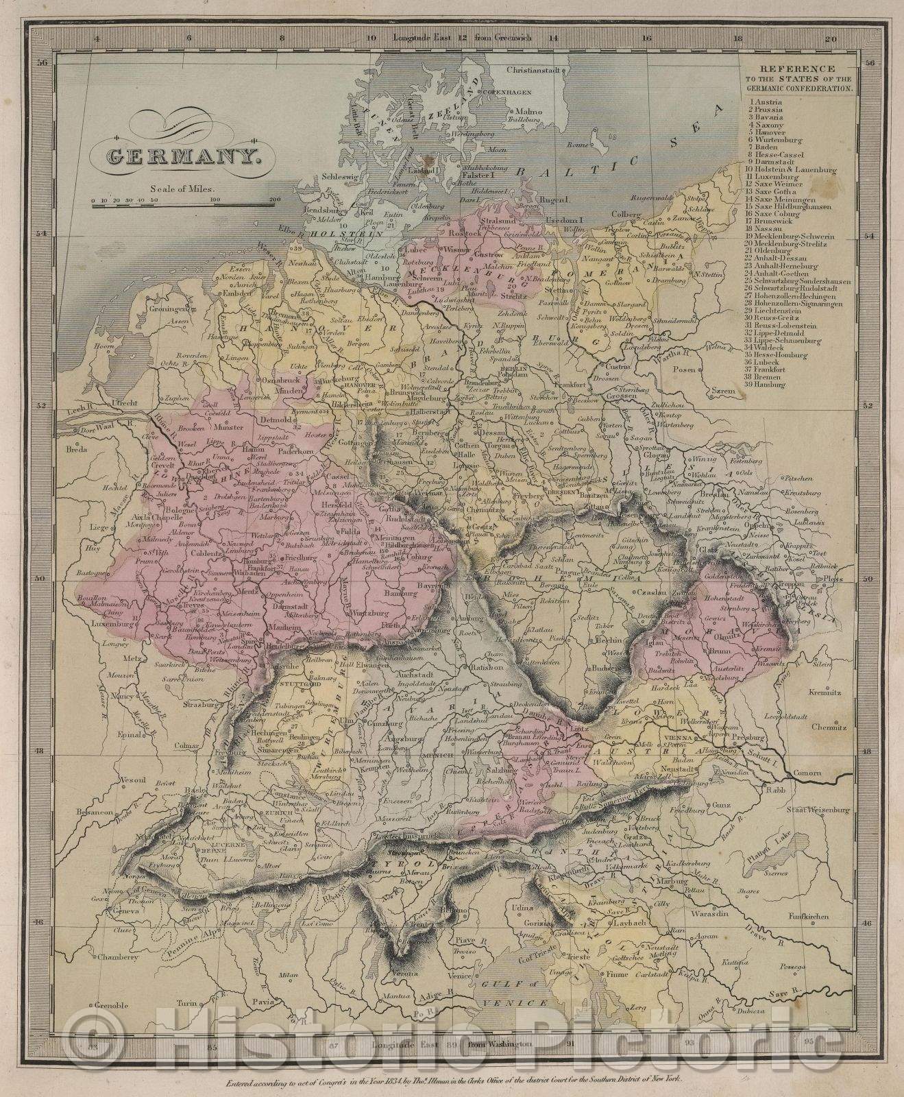 Historic Map : Germany., 1834 , Vintage Wall Art