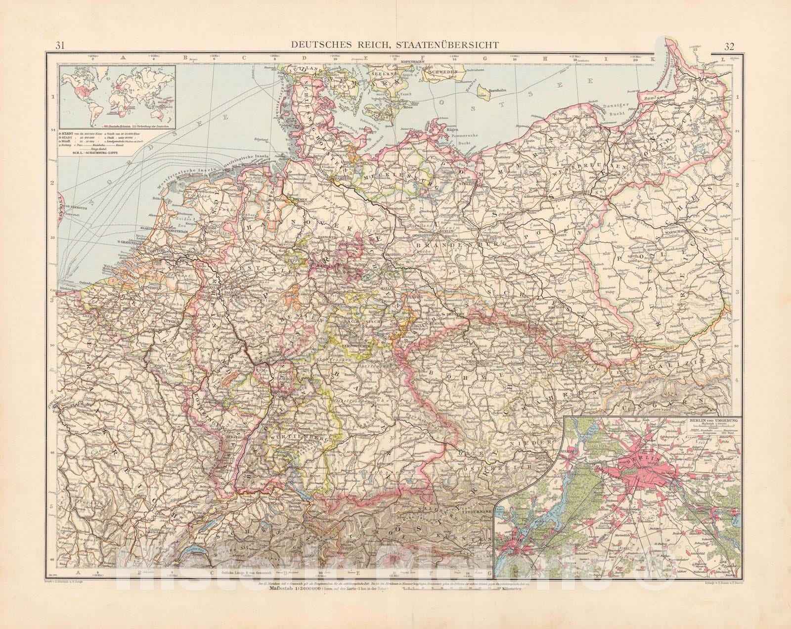 Historic Map : Germany 1899 , Andrees Allgemeiner Handatlas , v9, Vintage Wall Art