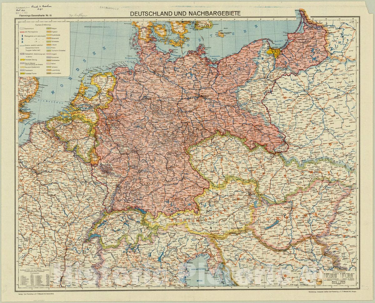 Map : Germany 1922, Deutschland und Nachbargebiete, Antique Vintage Reproduction