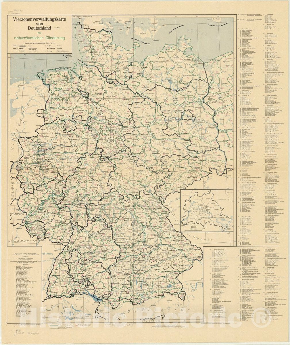 Map : Germany 1951, Vierzonenverwaltungskarte von Deutschland mit naturrA?umlicher Gliederung, Antique Vintage Reproduction