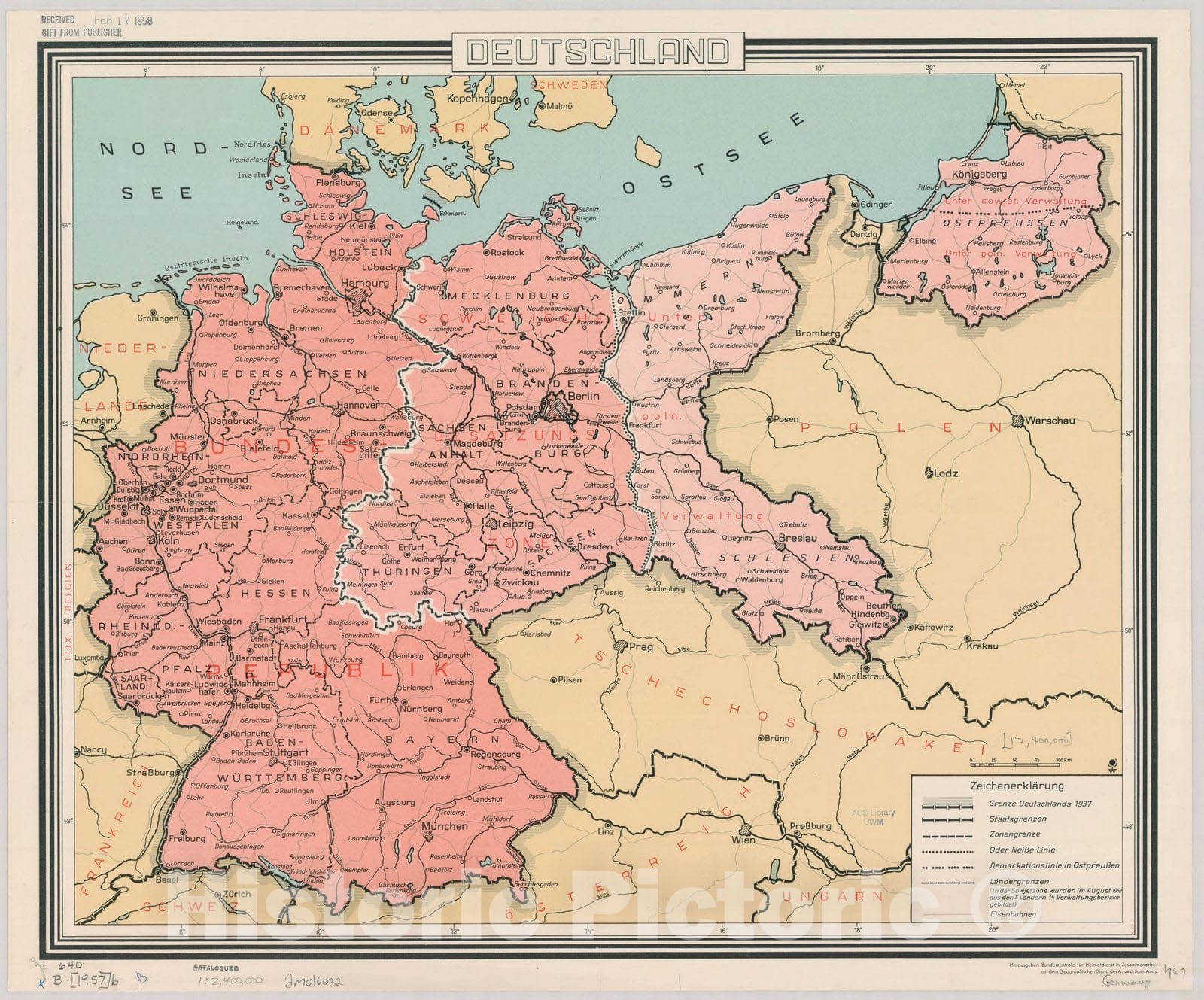 • Map : Germany 1957, Deutschland , Antique Vintage Reproduction