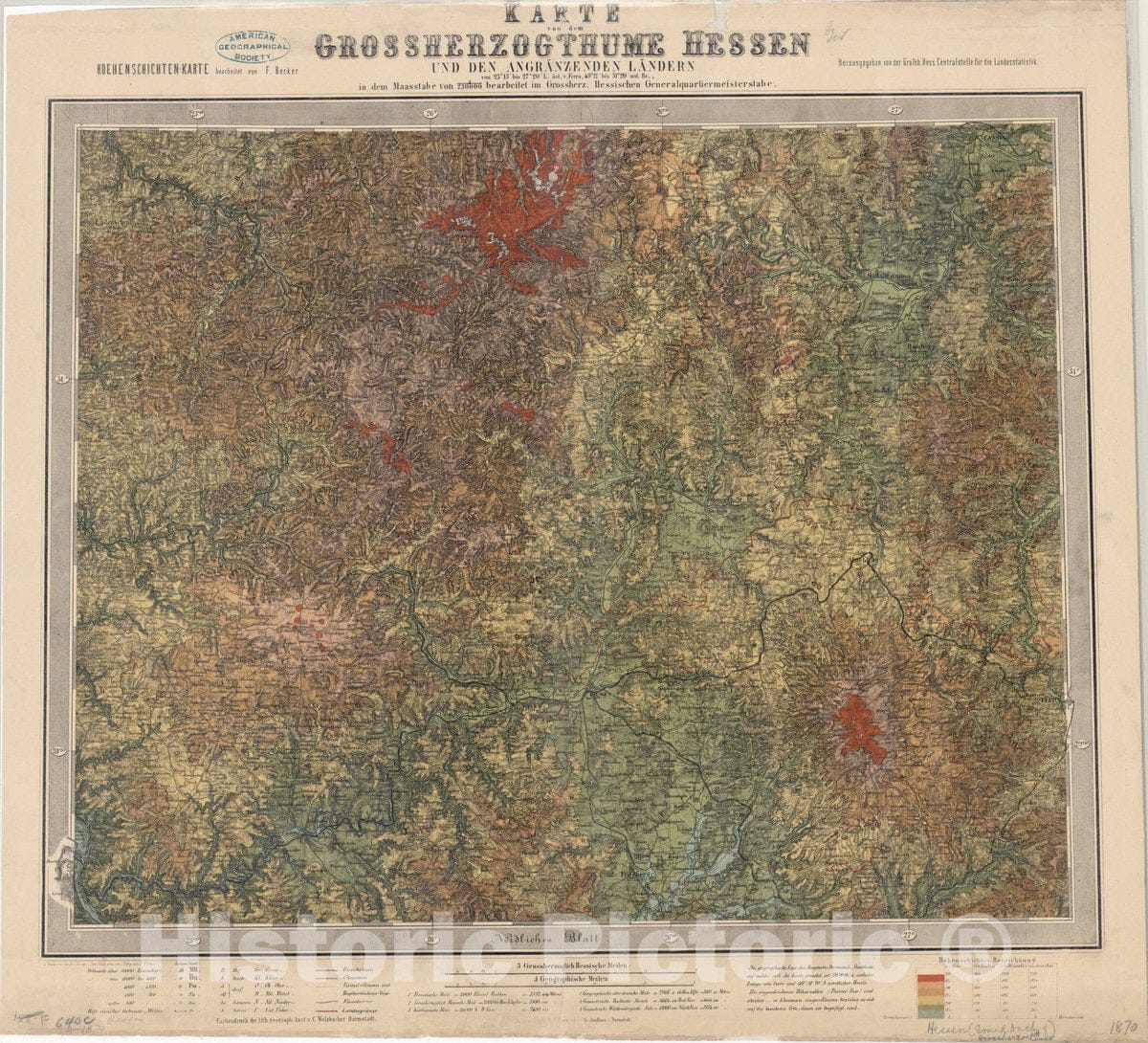 Map : Hesse-Darmstadt, Germany 1870, Karte von dem Grossherzogthume Hessen und den AngrA?nzenden LA?ndern , Antique Vintage Reproduction