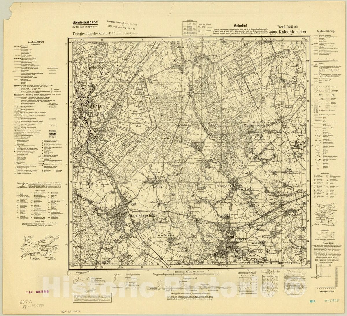 • .Map : Kaldenkirchen, Germany 1939, Topographische Karte 1:25 000 , Antique Vintage Reproduction