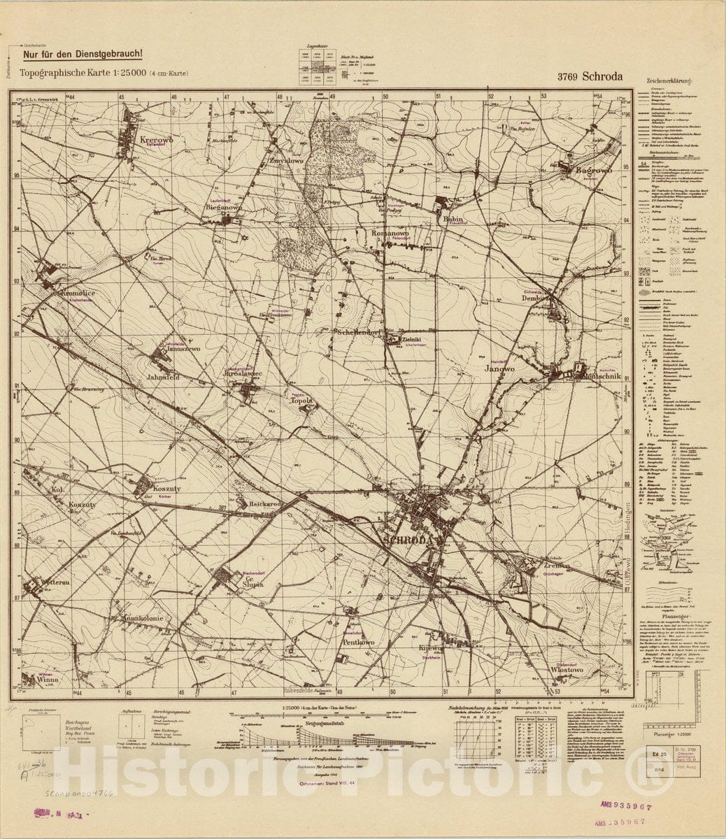 Map : Kreis Schroda, Germany 1940, Topographische Karte 1:25 000 3769 Schroda , Antique Vintage Reproduction