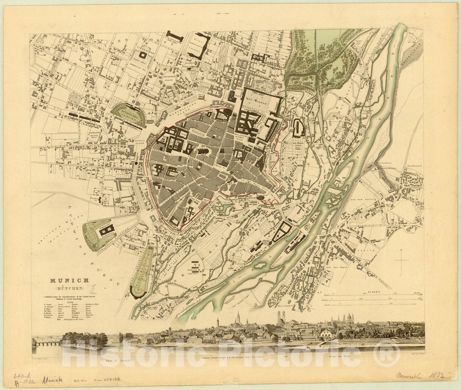 Map : Munich, Germany 1832, Munich, (Munchen) , Antique Vintage Reproduction