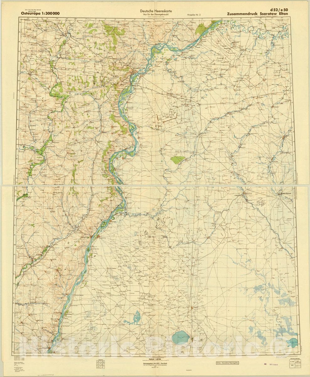 • .Map : Ssaratow and Elton, Germany 1943, Osteuropa 1:300,000 Zusammendruck Ssaratow Elton sheet d52, Antique Vintage Reproduction