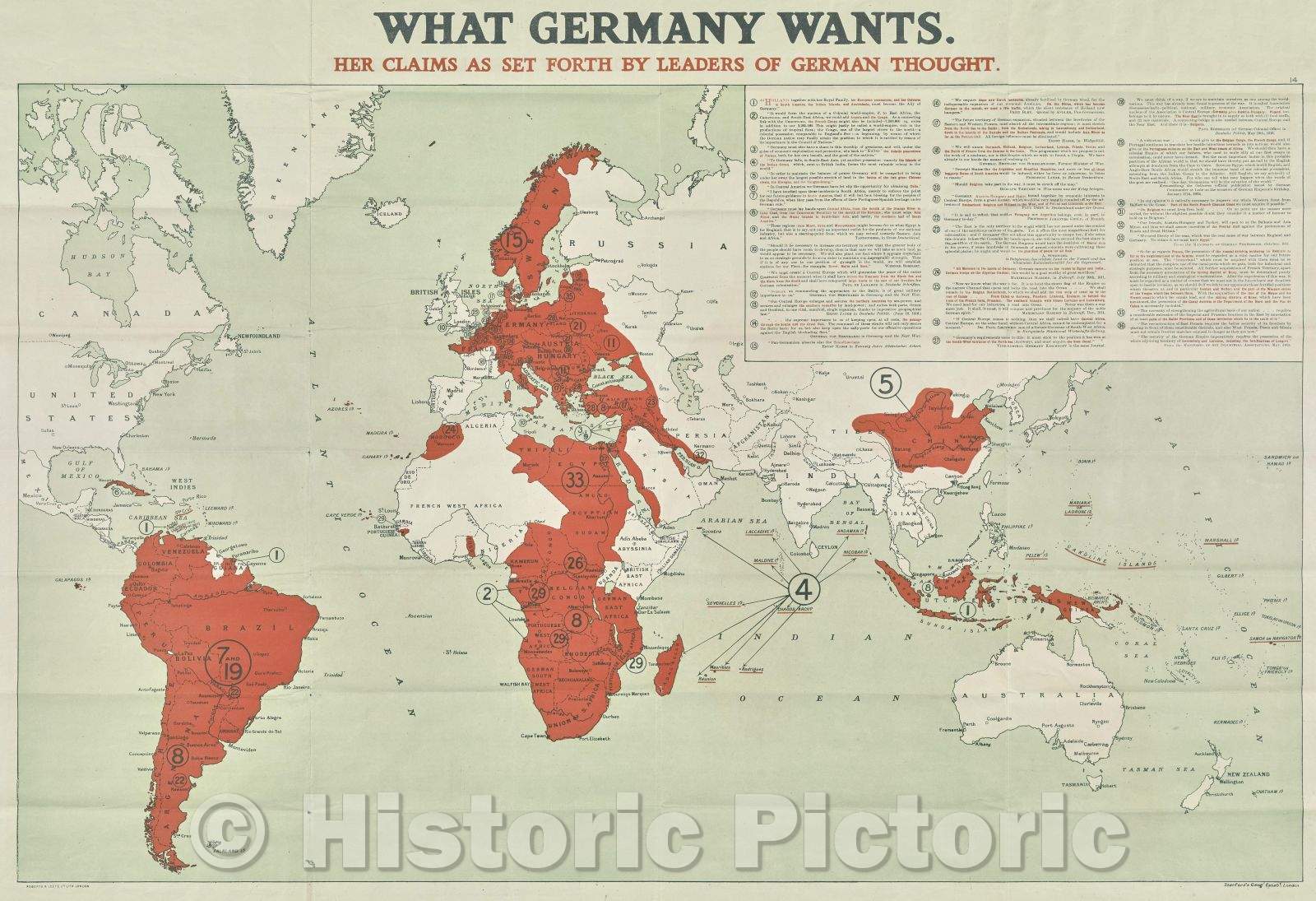 • .Historic Map : What Germany Wants: Her Claims as set forth by Leaders of German Thought., 1916 , Vintage Wall Art