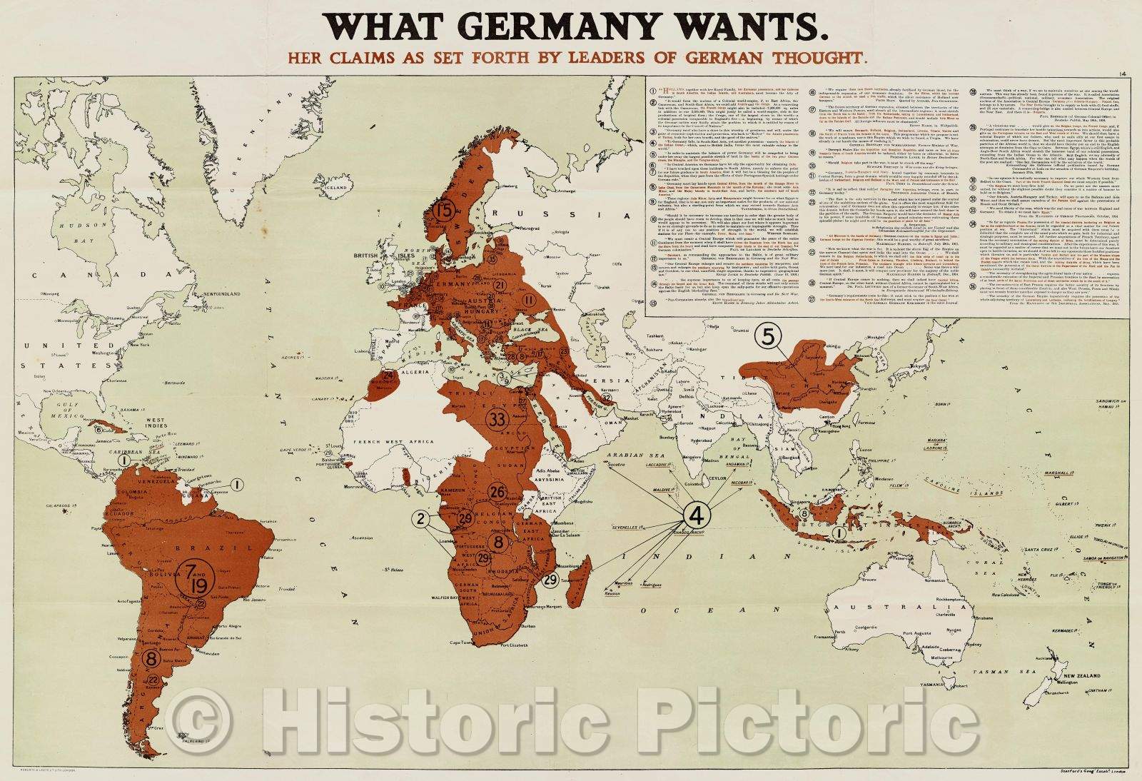 Historic Map : What Germany Wants: Her Claims as set forth by Leaders of German Thought., 1916 , Vintage Wall Art , v2