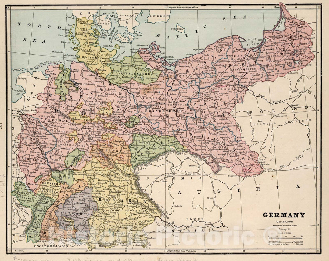 Historic Map : World Atlas Map, Germany. 1882 - Vintage Wall Art