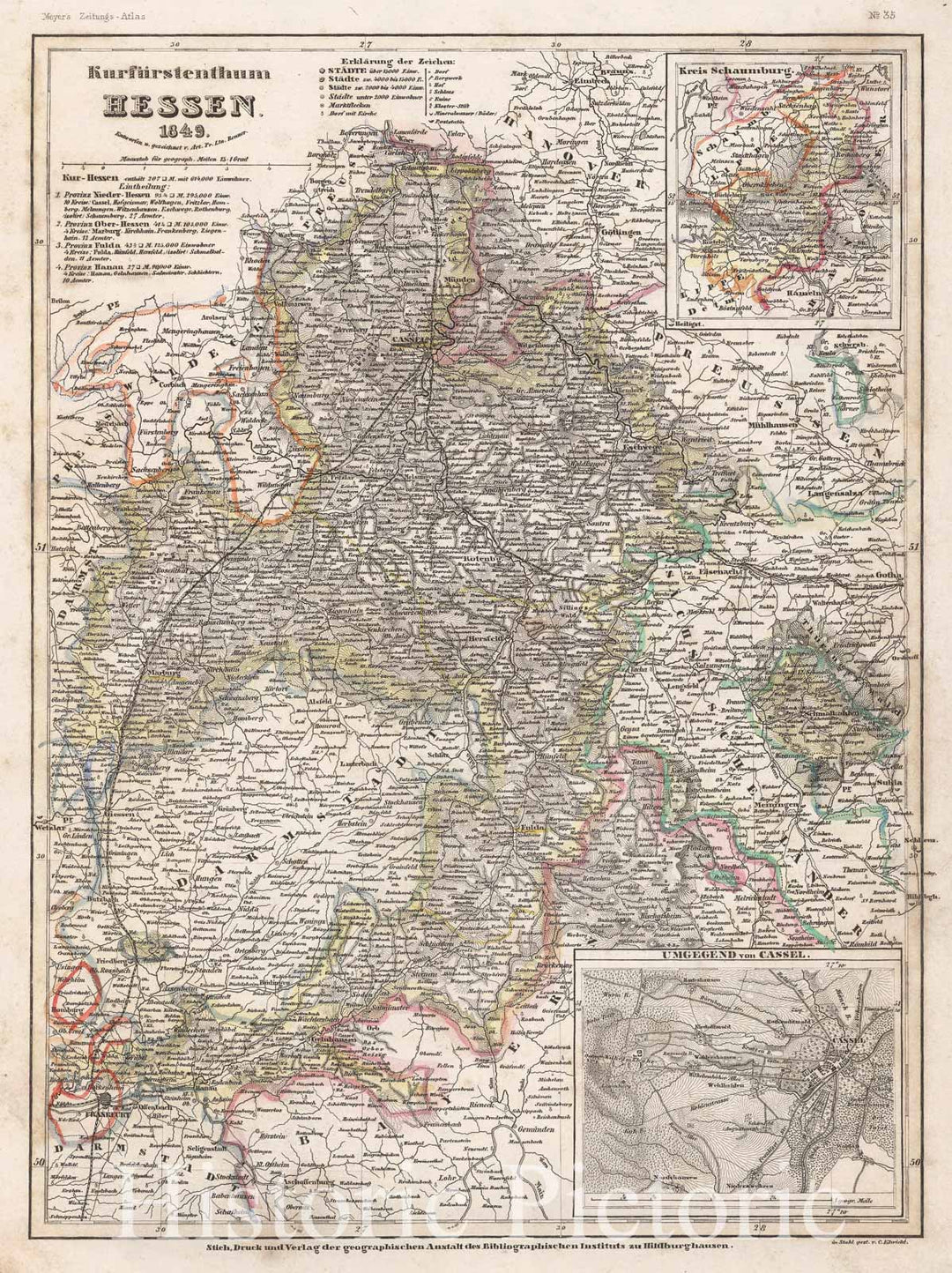 Historic Map : Meyer Map of The Electorate of Hesse, Germany, 1849, Vintage Wall Art