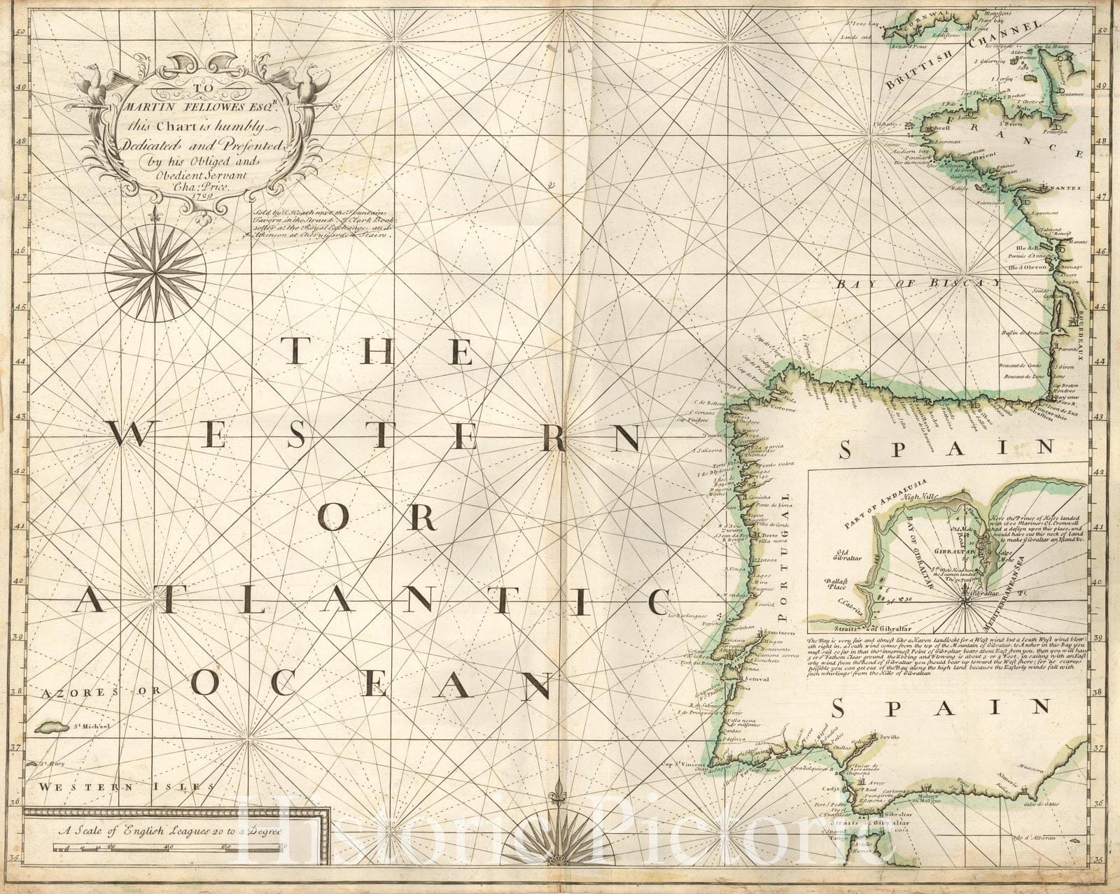 Historic Map - Atlantic Coast from British Channel to Straits of Gibraltar, 1730, Charles Price - Vintage Wall Art