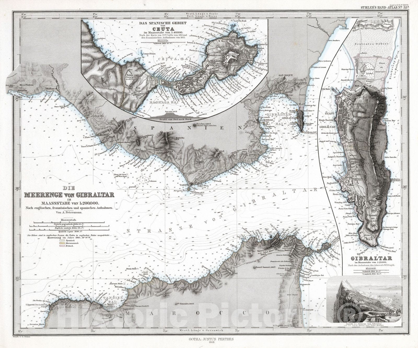 Historic Map : Ceuta , Spain, Gibraltar 1869 Die Meerenge von Gibraltar. (Strait of Gibraltar). , Vintage Wall Art