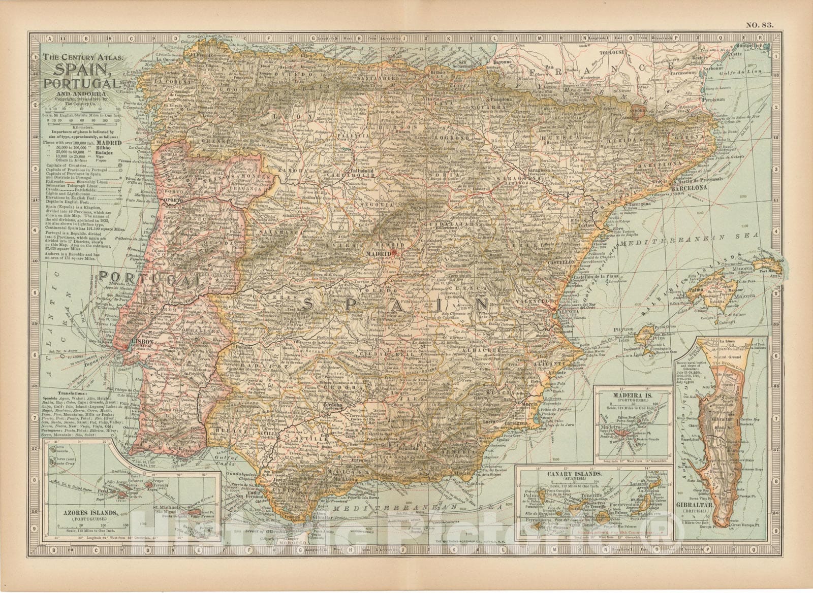 Century Atlas of the World, Spain & Portugal & Gibraltar 1914